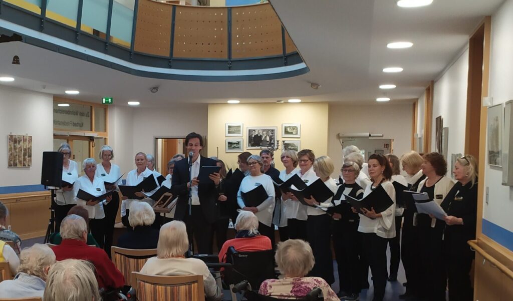 Das Abschlusskonzert vor der kleinen Sommerpause bis Mitte August galt wieder den pflegebedürftigen Bewohnern des Hubertus-Hauses in Berlin-Zehlendorf. Bei Sonnenschein sang der Chor ein vielfältiges Programm zur Freude aller Beteiligten.